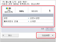 설정을 확인하고 → [다음화면]을 누릅니다.