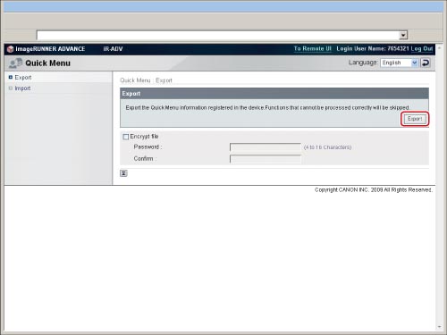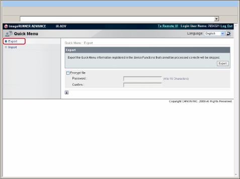 사용자메뉴에 복사, 스캔하여 송신 및 스캔하여 저장 등 자주 사용하는 기능 설정을 등록하면 다른 기기에서도 이러한 설정을 사용할 수 있습니다.