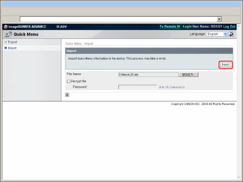 [Import]를 클릭합니다.