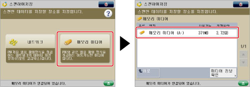 컴퓨터가 없는 환경에서도 메모리 미디어로 스캔된 데이터를 저장할 수 있고 메모리 미디어에 데이터를 인쇄할 수 있습니다.
