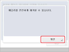 메모리 미디어가 연결되었다는 메시지와 제거 버튼