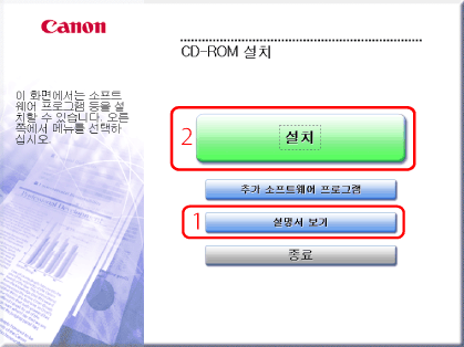 Network ScanGear 설치 설명서를 보려면 먼저 이 버튼을 클릭합니다. 설치를 시작한 후에는 설명서를 볼 수 없습니다.
