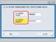 시스템 관리자 설정(시스템 관리 부문 ID/시스템 관리 비밀번호)이 설정된 경우