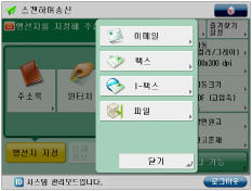 <스캔하여 송신에 팩스 표시>가 '설정'으로 지정되면 팩스 기능이 [스캔하여 송신]에 나타납니다.