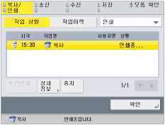 복사, 팩스 및 송신 작업 상황 확인에 대한 자세한 내용은 "상황확인/중지."를 참고하십시오.