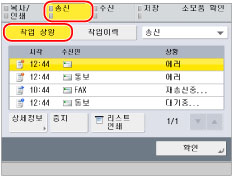 송신작업 리스트에는 팩스, 이메일, I-팩스 및 파일 서버 송신 리스트가 인쇄됩니다.