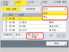 드롭다운 리스트를 누르고 → [송신]을 선택하고 → [리스트 인쇄]를 선택합니다.