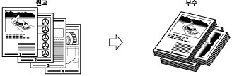 스테이플을 수행할 때 원고 방향과 용지 방향에 대한 자세한 내용은 "원고 방향과 용지 방향의 관계."를 참고하십시오.