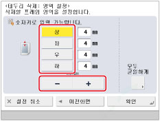 [중앙] 및 [측면]를 누르고 → [-] 또는 [+]를 눌러 각 테두리 삭제 폭을 설정합니다.
