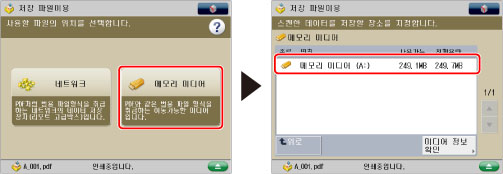 인쇄 대기 중인 예약 작업이 2개 이상인 경우, 예약된 작업에 지정된 최근 용지 크기/종류만 용지선택 화면과 일반 복사 기본 기능 화면에 나타납니다.