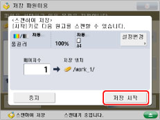 마지막 원고 묶음이 스캔된 후 다음 화면이 표시되면 [저장 시작]을 누릅니다.