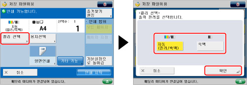 흑백 인쇄 직후에 컬러 인쇄를 수행하려 할 경우 기기에서 컬러 인쇄를 준비 중이라는 메시지가 나타날 수도 있습니다. 이 경우에는 메시지가 사라질 때까지 잠시 기다리십시오. 메시지가 사라지면 컬러 인쇄가 시작됩니다.