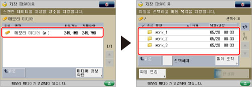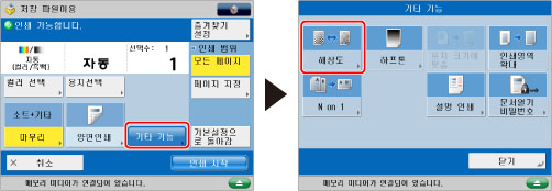 [수퍼파인(1200 dpi)]를 설정한 경우, 용지 선택 화면에서 용지 크기로 자동, A4, B5 또는 A5R을 선택합니다.