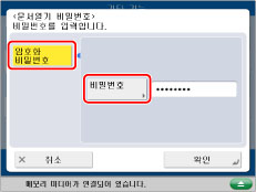 암호화된 PDF 파일을 열려면 [암호화 비밀번호]를 누르고 → [비밀번호] → 비밀번호를 입력합니다.