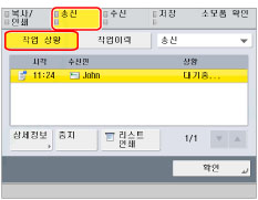 취소된 작업은 작업 이력 화면에 <NG>(No Good)로 표시됩니다.