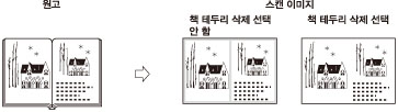 이 모드에서는 다양한 종류의 원고를 스캔할 때 나타나는 그림자, 선 및 제본 표시를 삭제할 수 있습니다.