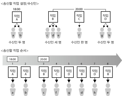 24시간 이내의 지정된 시간에 팩스를 송신하도록 타이머를 설정할 수 있습니다.