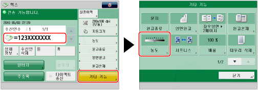 수신인을 지정하고 → [기타 기능] → [농도]를 누릅니다.