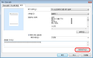 지정한 표지가 팩스 송신 시 팩스에 첨부됩니다.