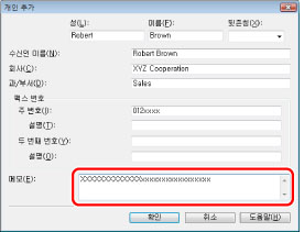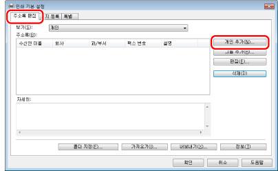 또한 이전에 등록한 단일 개인 주소를 변경할 수도 있습니다. 자세한 내용은 팩스 드라이버 창의 하단 오른쪽 모서리에 있는 [도움말]을 클릭하여 온라인 도움말을 참고하십시오.