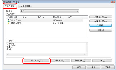 주소록의 대상 폴더에 액세스 권한(기본값: 고급 사용자 이상)이 없는 경우 주소록에 액세스하거나 편집할 수 없습니다. 이 경우에는 폴더에 대한 액세스 권한을 가진 사용자로 다시 로그온하거나 [주소록 편집]의 [폴더 지정]을 클릭한 후 쓰기 권한을 가진 [내 문서] 폴더와 같은 폴더로 주소록 대상 폴더를 지정합니다.