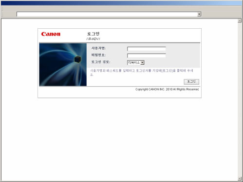 로그인 대상을 선택한 다음 사용자명 및 비밀번호를 입력하여 리모트 UI 또는 MEAP 응용 프로그램(로그인 응용 프로그램 포함)에 로그인합니다.
