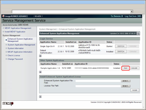 시작할 응용 프로그램에 대해 [Start]를 클릭합니다.