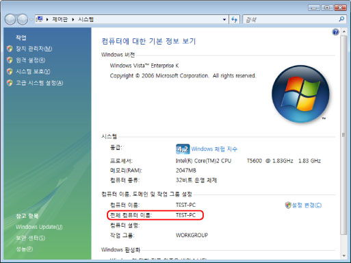 Windows Vista를 사용하는 경우에는 이 절차를 수행하는 동안 대화 상자가 나타날 수 있습니다. 이런 경우에는 사용자 이름과 비밀번호를 입력합니다. 자세한 내용은 운영 체제에 동봉된 설명서를 참고하십시오.