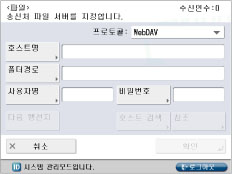 터치 패널 화면의 언어를 변경한 경우, [호스트명]과 [폴더경로]가 제대로 표시되지 않을 수도 있습니다.