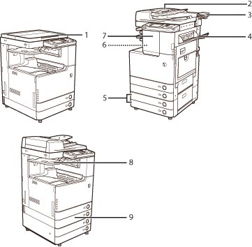 스캐너 기기는 원고대에 세트된 문서를 스캔하고 피더는 적재한 문서를 하나씩 원고대로 보냅니다. DADF-AC1은 지역에 따라 표준으로 장착될 수도 있습니다.