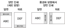 양면 인쇄 시 페이지 뒷면에서 이미지 방향은 제본 위치 모드에 따라 변경될 수 있습니다.