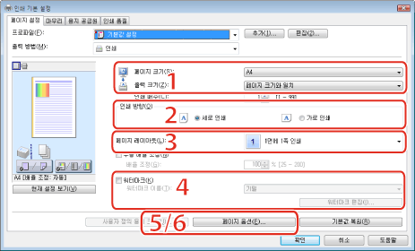 프린터 드라이버 화면을 표시하는 방법에 대한 자세한 내용은 "인쇄" 또는 "기본 인쇄 설정 구성"을 참고하십시오.