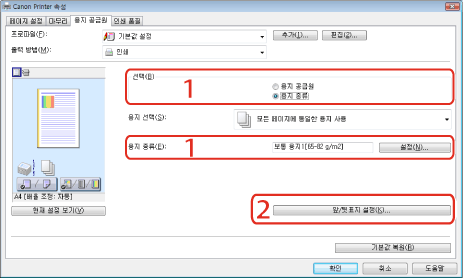프린터 드라이버 화면을 표시하는 방법에 대한 자세한 내용은 "인쇄" 또는 "기본 인쇄 설정 구성"을 참고하십시오.