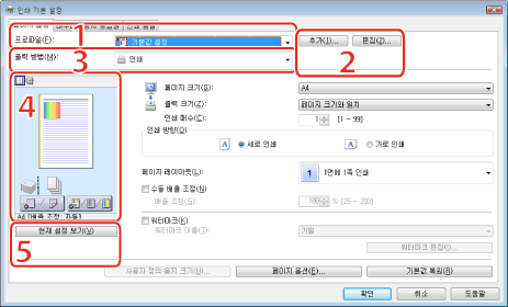 프로파일을 선택하여 동일한 인쇄 설정을 편리하게 반복 적용할 수 있습니다. ("인쇄에 사용할 프로파일 선택" 참고)