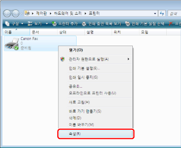 ](시작) → [장치 및 프린터]를 클릭합니다.Windows XP Professional/Server 2003의 경우 [시작]→ [프린터 및 팩스]를 클릭합니다.