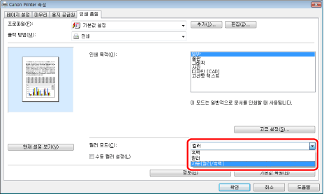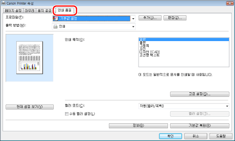 화면은 운영 체제와 프린터 드라이버의 종류 및 버전에 따라 다를 수 있습니다.