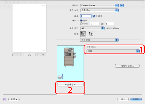 화면과 사용할 수 있는 기능은 프린터 드라이버의 종류와 버전에 따라 다를 수 있습니다. 사용 중인 프린터의 모든 기능을 지원하는 최신 프린터 드라이버가 출시되면 그 즉시 Canon의 웹 사이트에 공개됩니다. 필요할 때마다 Canon 웹 사이트에서 프린터 드라이버를 다운로드하여 사용할 수 있습니다.
