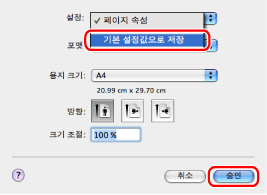 [설정]에서 [기본 설정값으로 저장]을 선택하고 → [확인]을 클릭합니다.