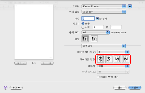 한 장에 여러 페이지 인쇄