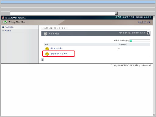 시스템 박스 설정에 대한 자세한 내용은 "팩스/I-팩스 박스."를 참고하십시오.