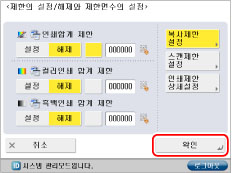 0~999, 999페이지까지 제한면수를 설정할 수 있습니다. 제한면수에 도달하면 복사, 스캔 또는 인쇄할 수 없습니다.