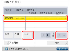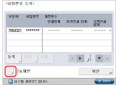 (Clear)를 눌러 모든 번호를 삭제하고 → 올바른 번호를 입력하십시오.0~999, 999페이지까지 제한면수를 설정할 수 있습니다. 제한면수에 도달하면 복사, 스캔 또는 인쇄할 수 없습니다.