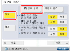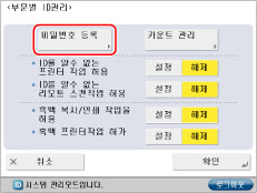 카드 리더-C1/복사 카드 리더-F1을 통해 부문별 ID 관리를 활성화하는 경우, 부문 ID는 등록/삭제할 수 없습니다.