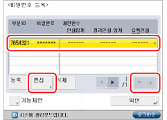 을 눌러 변경하려는 비밀번호가 있는 부문을 표시하고 → 부문을 선택한 다음 → [편집]을 누릅니다.