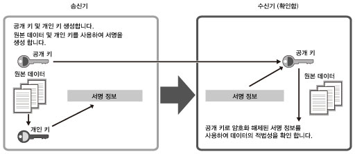 (See "전자 서명을 PDF 또는 XPS 파일에 추가하기 위한 키 페어, 기기 서명 증명서 및 사용자 증명서 생성과 확인.")