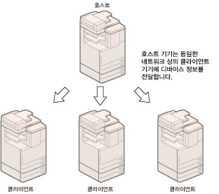 본 기기는 디바이스 정보를 IPv4를 사용하는 기기 또는 Pv6을 사용하는 기기로 전달할 수 있습니다.