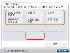 [설정/등록의 설정값]과 [주소록]을 동시에 복원하지 않는 경우 [팩스/I-팩스 박스 설정]에서 [URL 송신 설정]의 설정이 삭제될 수도 있습니다.