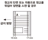 피더에 원고를 로드할 때 아래 다이어그램을 통해 표시된 범위에만 컬러 섹션이 있는 경우
