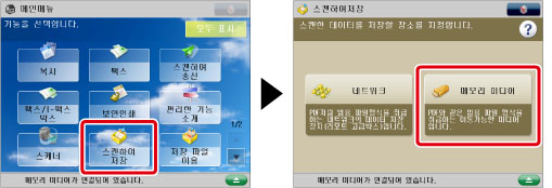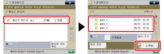 연속 스캔 모드 중에 [설정 변경]에 제공되는 기능에 대한 설정만 변경할 수 있습니다. 먼저 원하는 모드를 선택합니다.