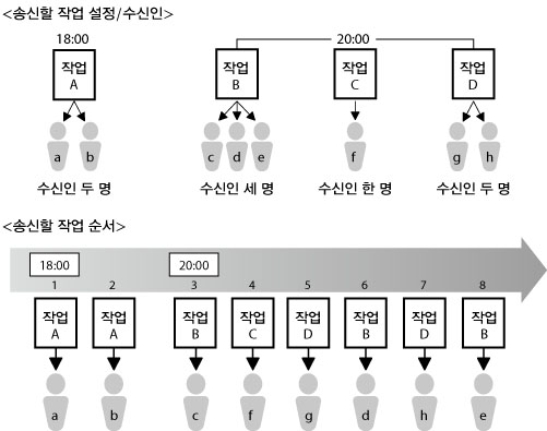 24시간 이내의 지정된 시간에 문서를 송신하도록 타이머를 설정할 수 있습니다.
